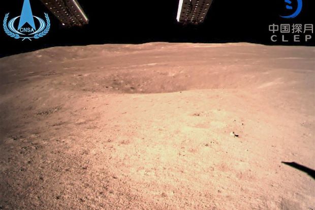 The Chang’e-4 probe touched down and sent a photo of the so-called “dark side” of the moon to the Queqiao satellite, which will relay communications to controllers on Earth, China’s national space agency said on its website.