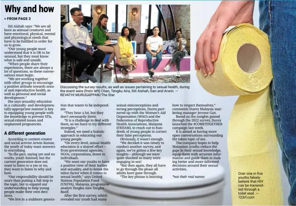 Discussing the survey results, as well as issues pertaining sexual health, during the events were (from left), Chan, Tengku Aira, Siti Aishah, Gan and Arwin - REVATHI MURUGAPPAN/The Star